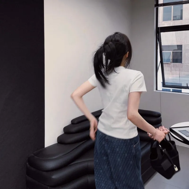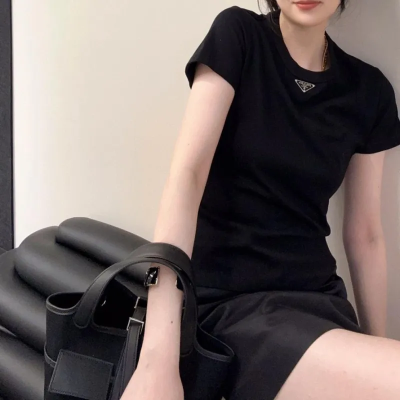 『M-XL』超スリム見え シンプル 上品 メタルロゴデコレーション 高級感 Tシャツ