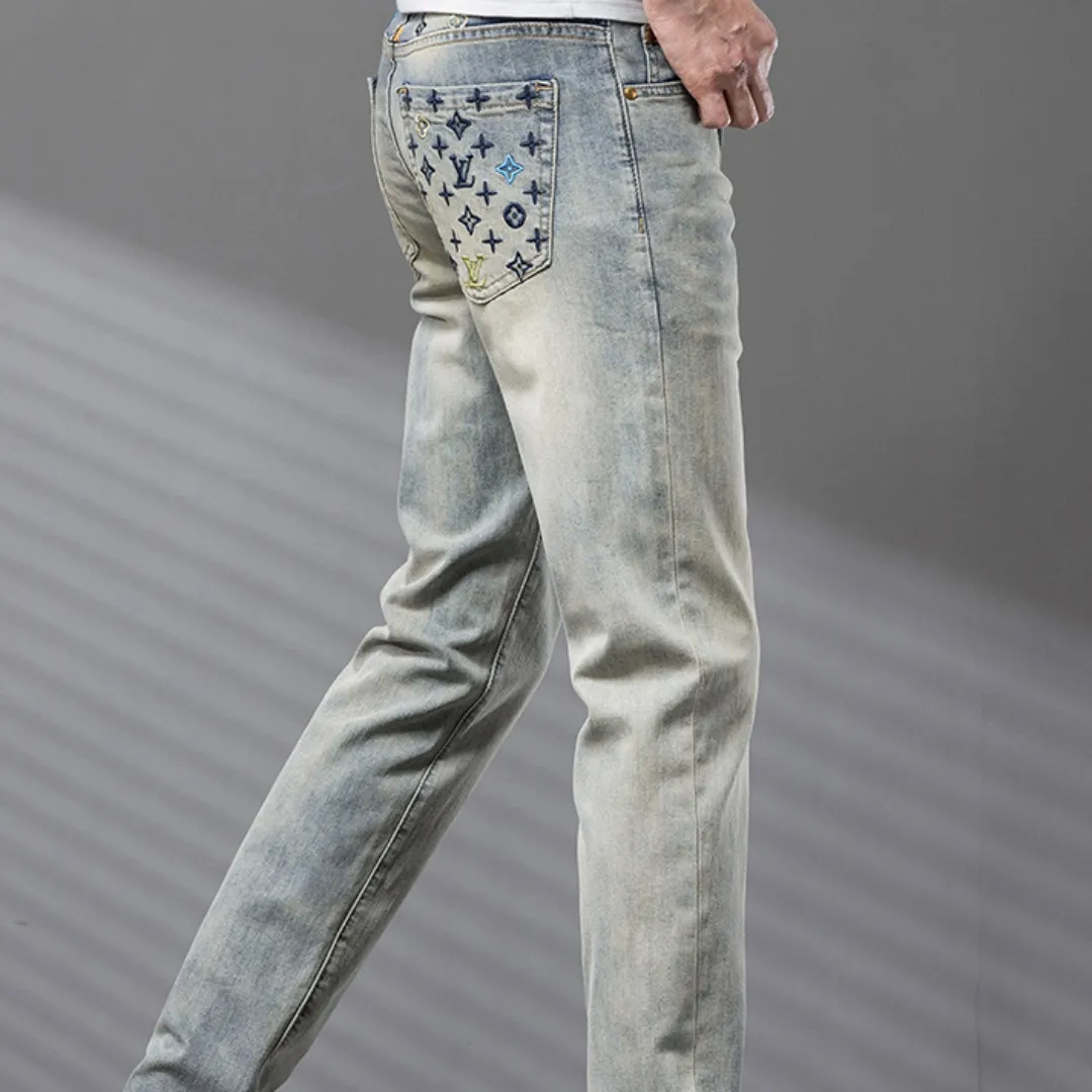 『S-2XL』ハイエンド ウォッシュ メンズ ストリートブランド 刺繍 春夏 新作 ヴィンテージカラー ジーンズ
