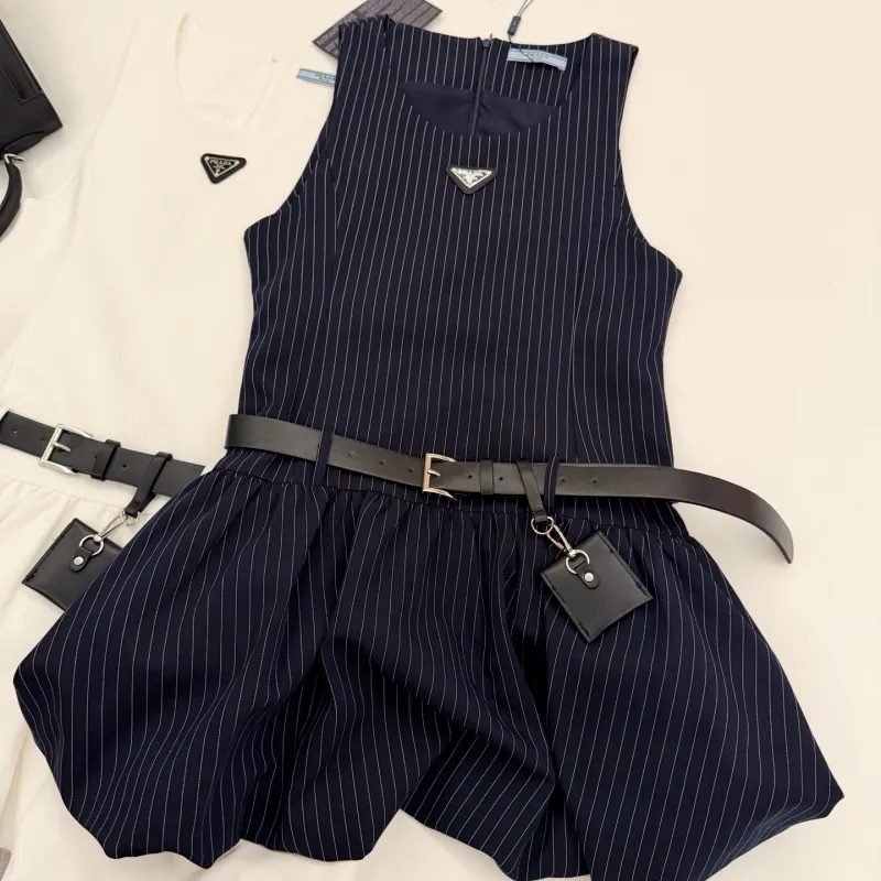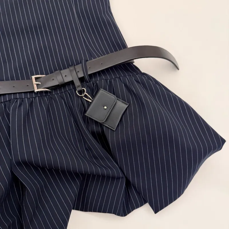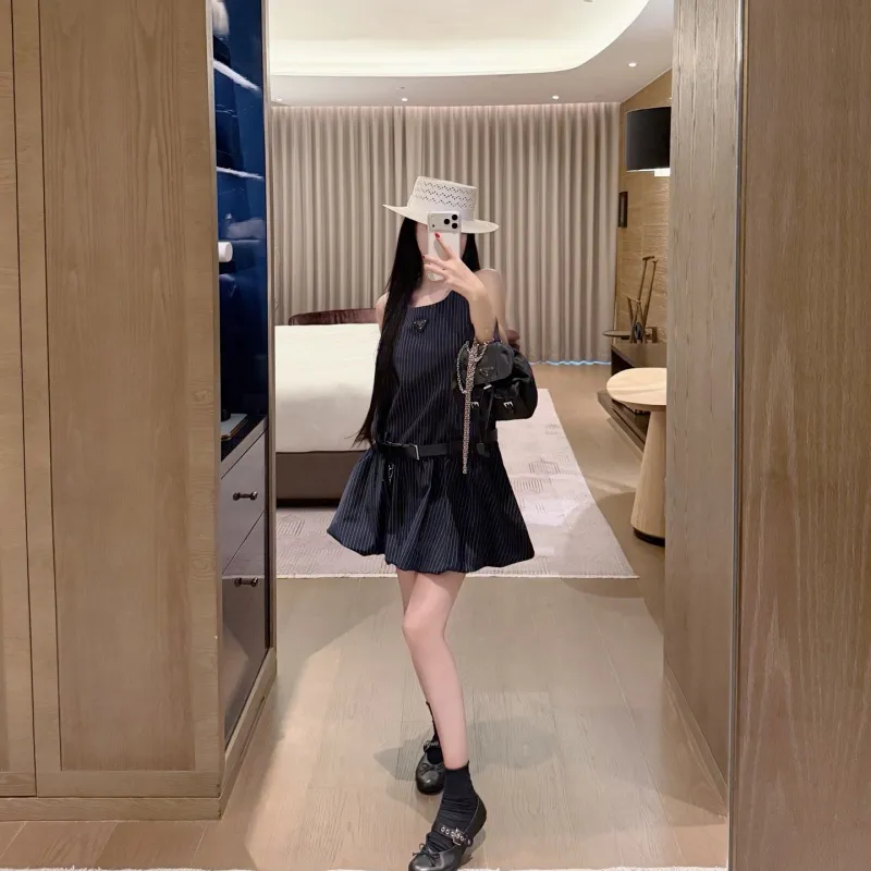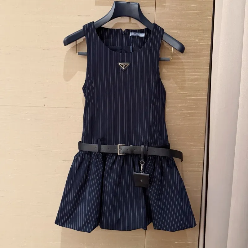 『S-L』好感度100% 質感のいい フェミニン ストライプ ノースリープ フリル ワンピース