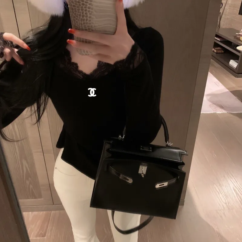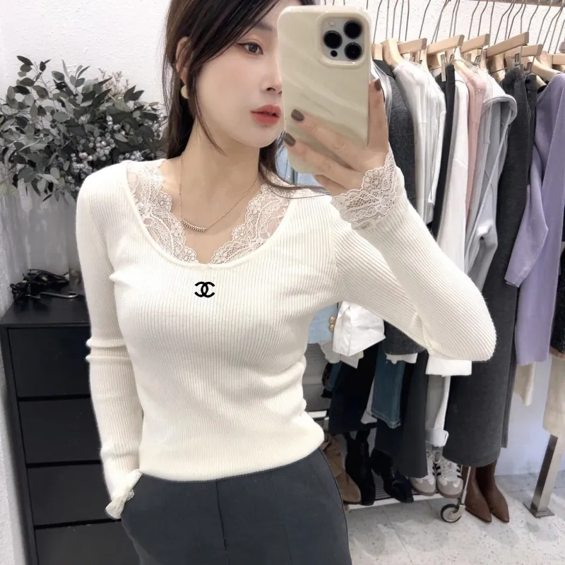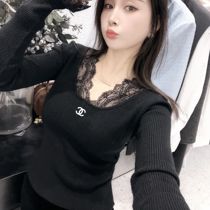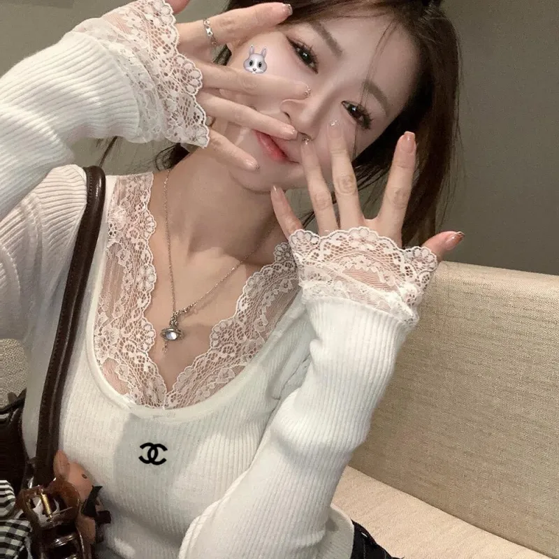 『S-L』絶対流行 魅力的 レトロ Vネック レース トップス