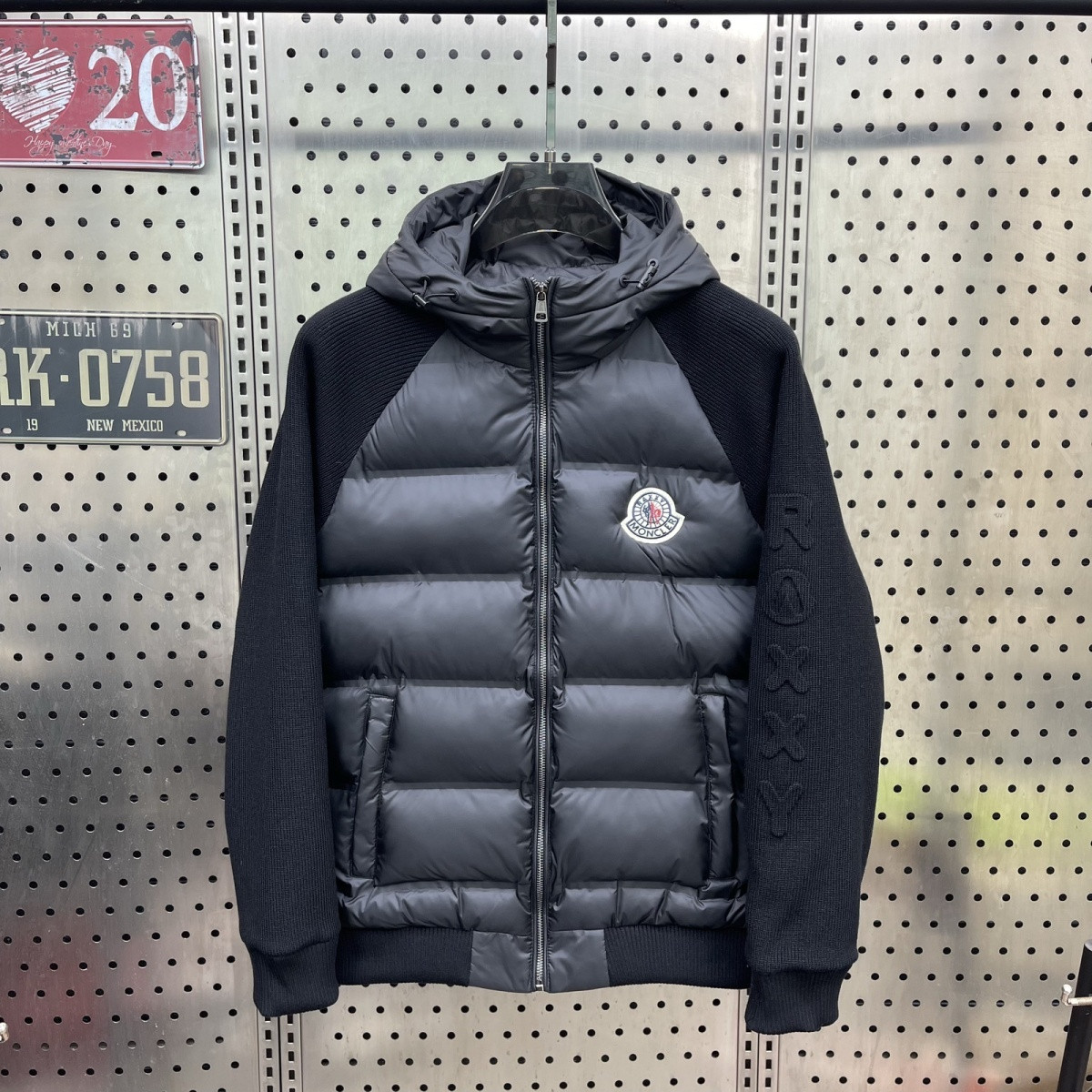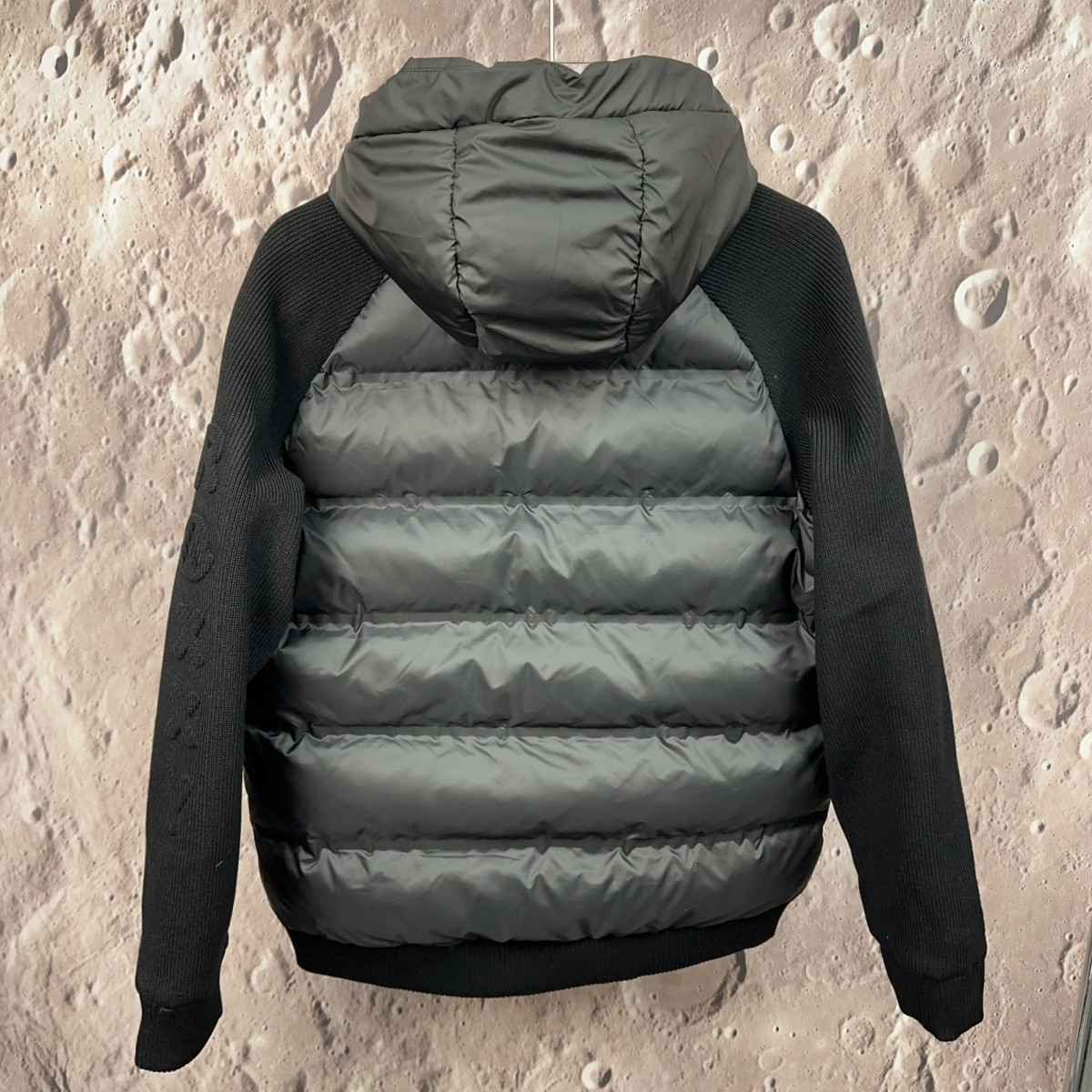 【L-5XL】高級ファッションニットスリーブパッチワークジャケットメンズ、冬用フード付き厚手暖かい