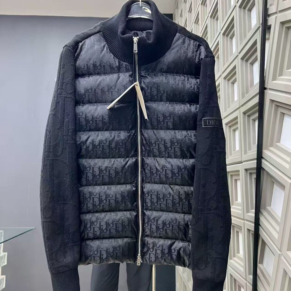 おしゃれなパッチワークニットスタンドカラーコットンコート。秋冬に暖かく、ユニセックス。