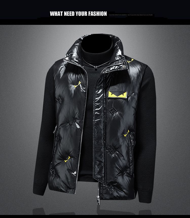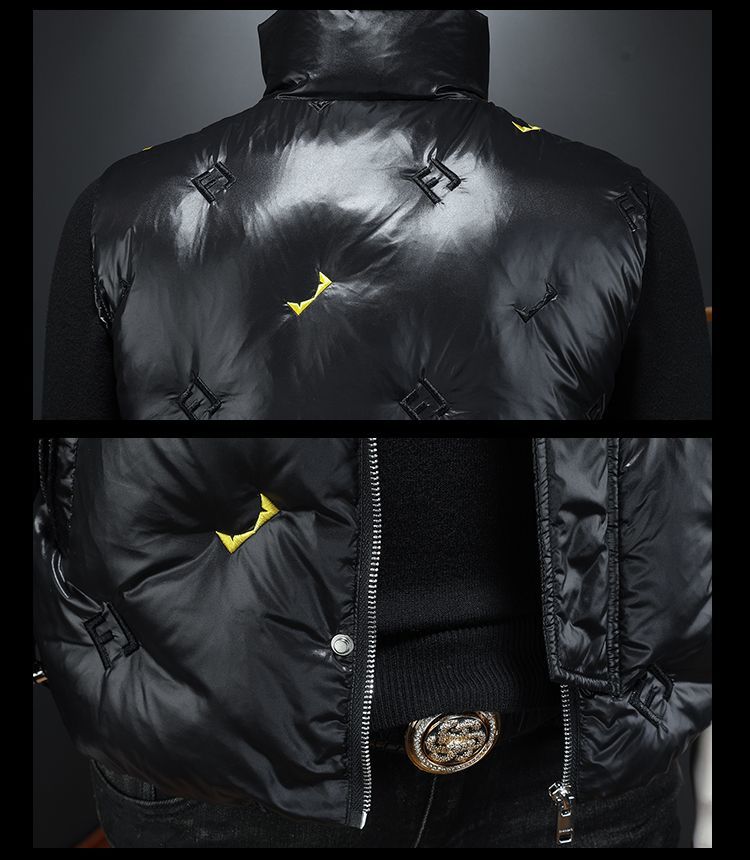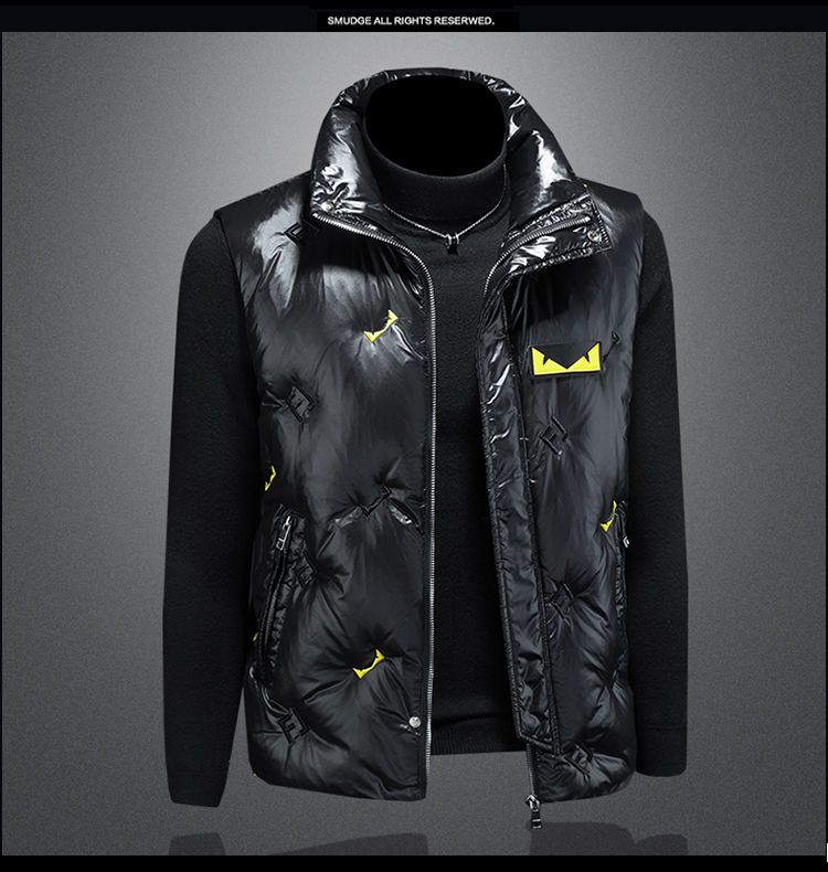メンズダウンベスト、スタイリッシュなスタンドカラー、秋冬用の暖かいアウター