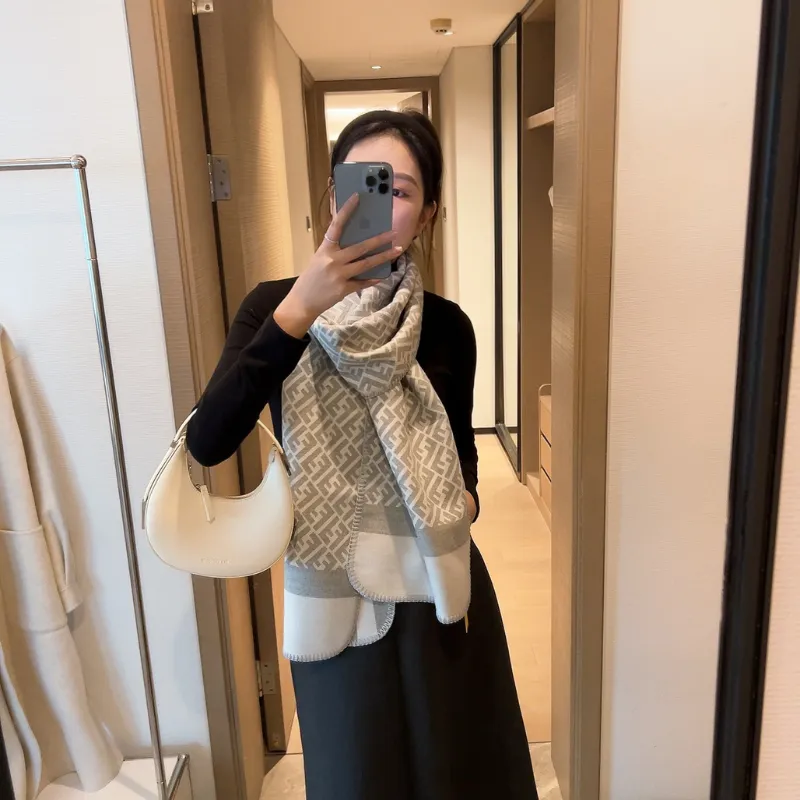 上質感あふれる!ふんわり軽い 手触りの良い 暖か ウール94%、シルク6% マフラー 1