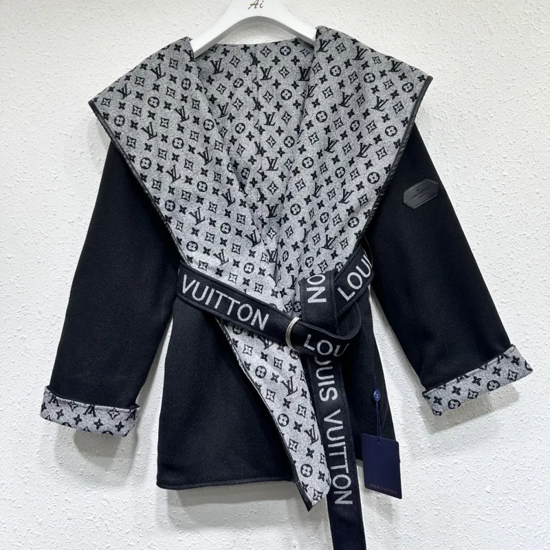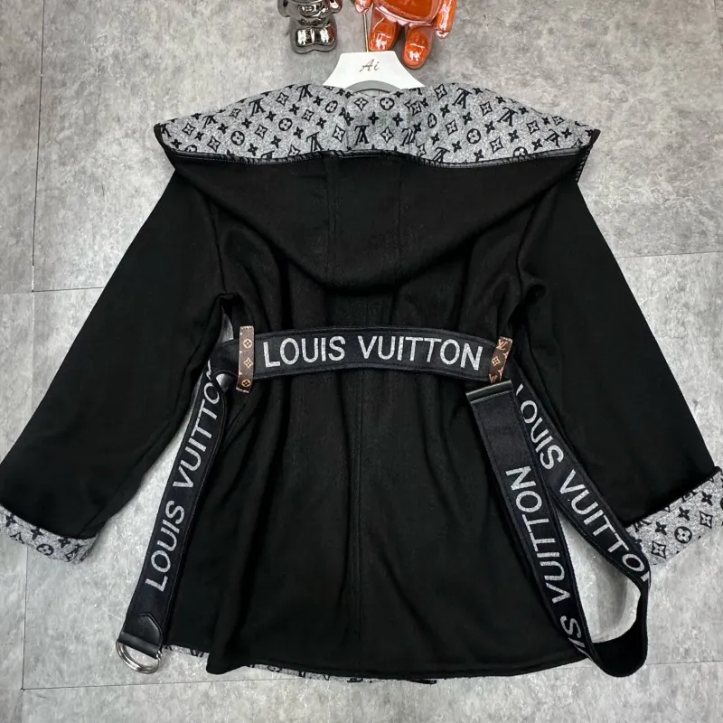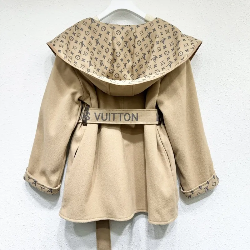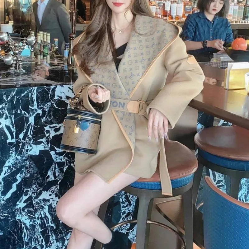 人気の新しいエレガントなベルト付きウールコート、ゆったりとしたフード付きウールジャケット、2025年秋冬