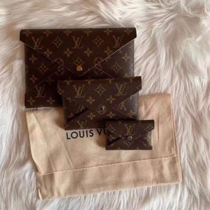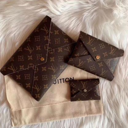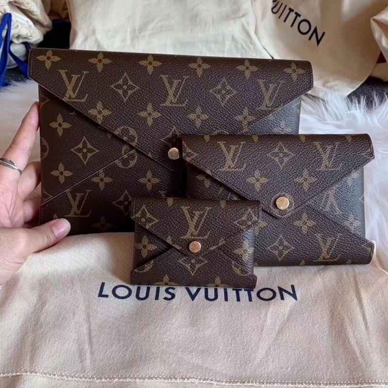 3つのエンヴェロップを1つに合わせた「ポシェット・キリガミ」。ロシアの人形 マトリョーシカのような構造は、日用品を持ち運ぶのに最適。大きなポシェットには書類、口紅、小切手帳などの日用品を、ミディアムサイズのポシェットにはパスポートや鍵を、そしてミニサイズのポシェットにはカードやコインを収納できます。