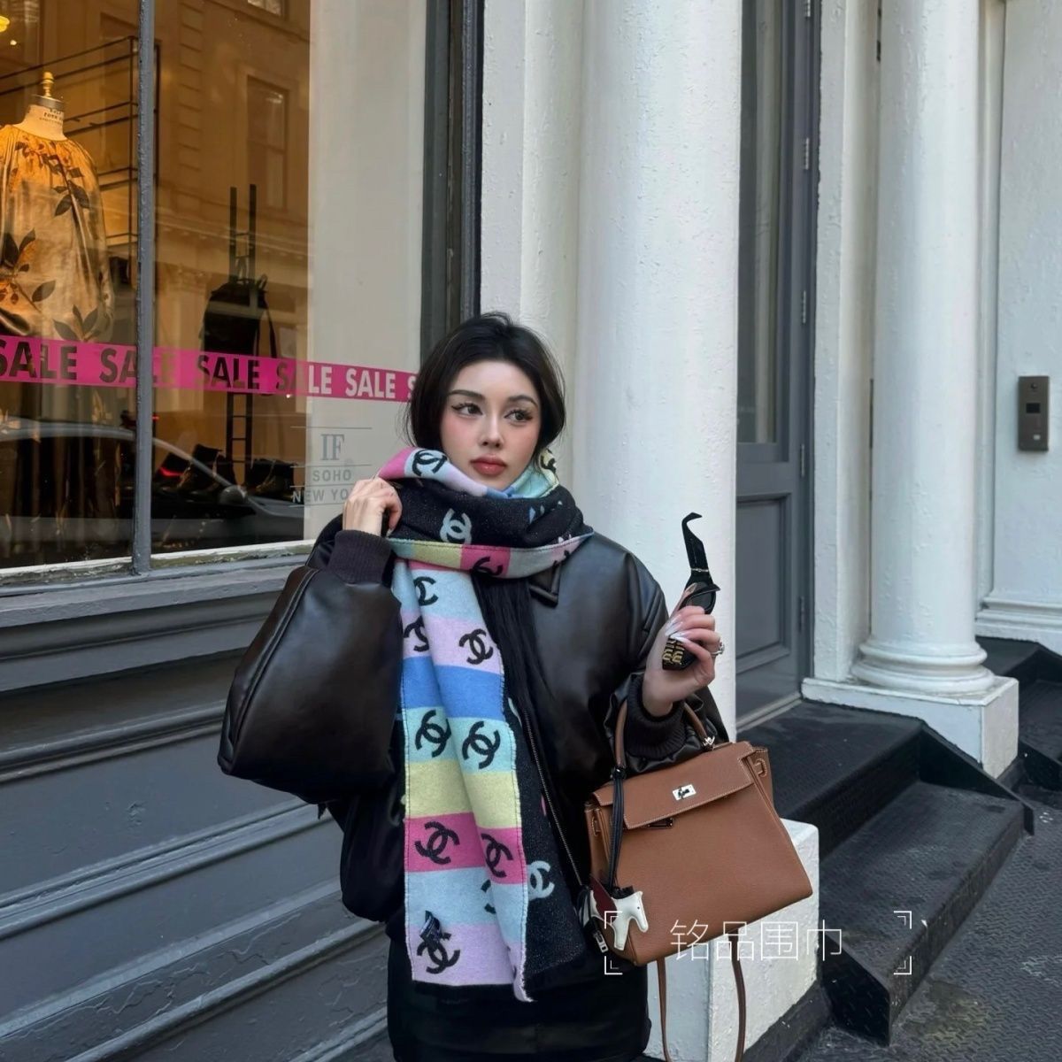 新しい秋と冬のスカーフタッセル暖かい両面レインボーネックショールデュアル目的