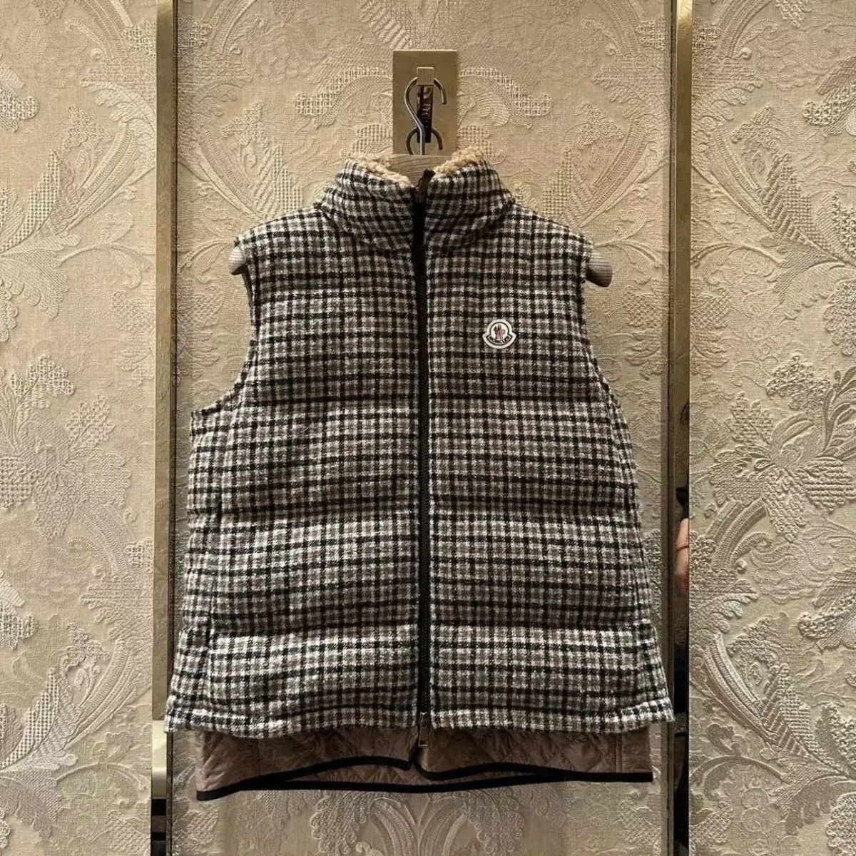 新しい秋のスタイルの千鳥格子ベストダウンジャケット、暖かい