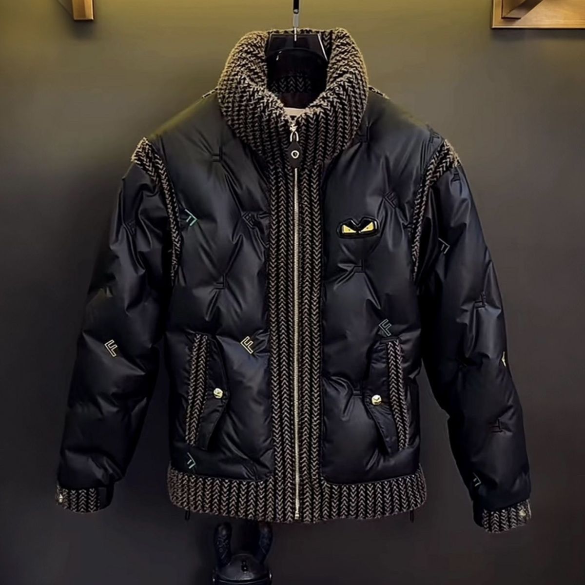 新作スタンドカラーデビルアイズ全身刺繍隕石ブラックハイエンド暖かい極寒コート