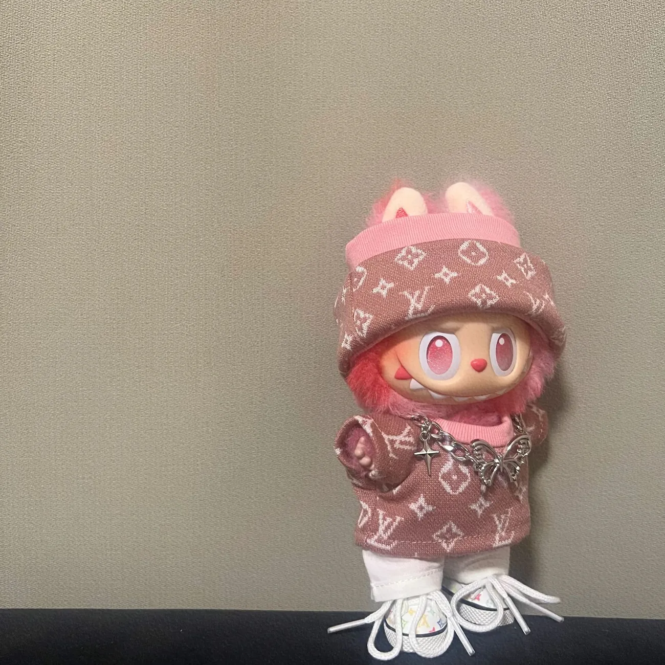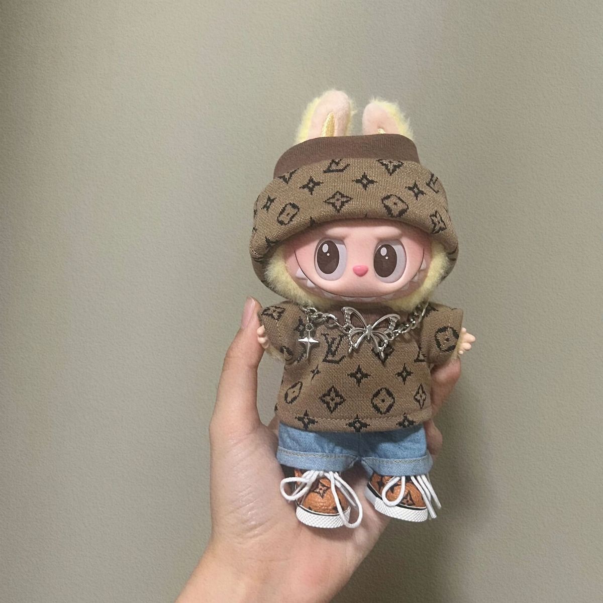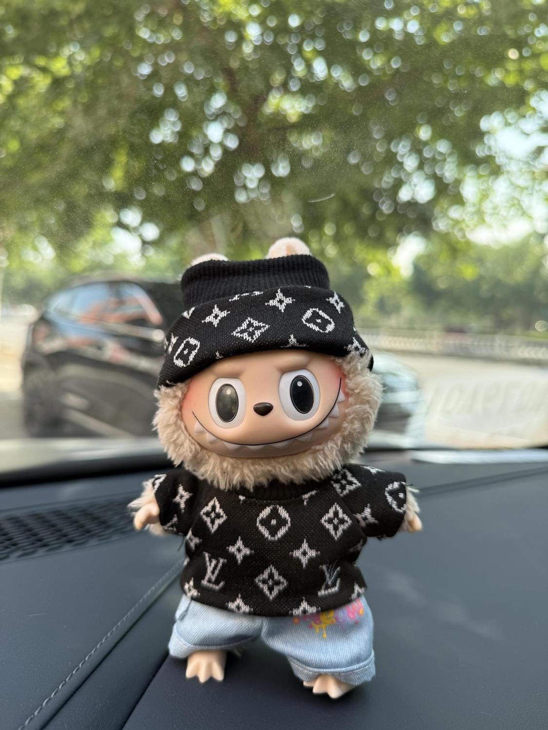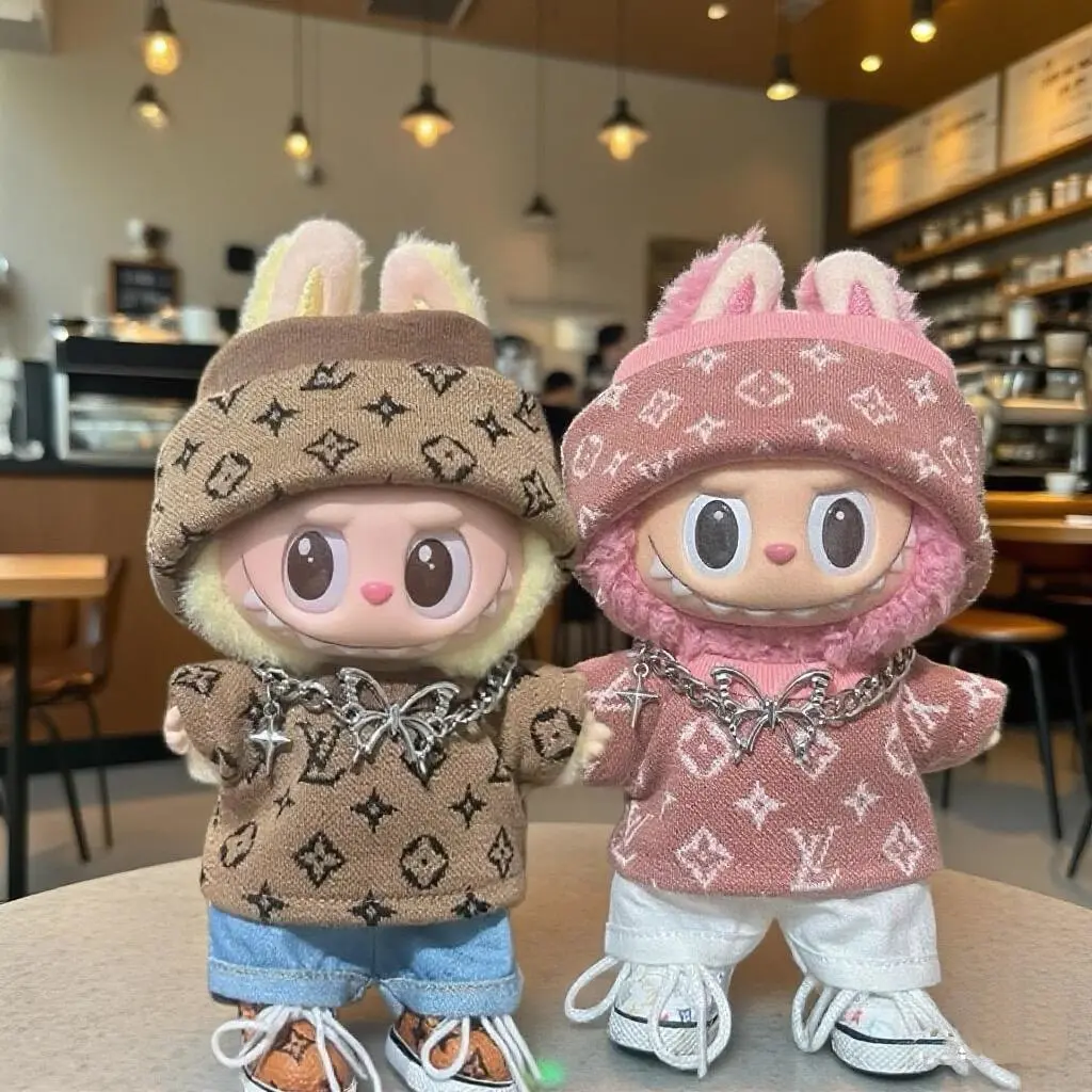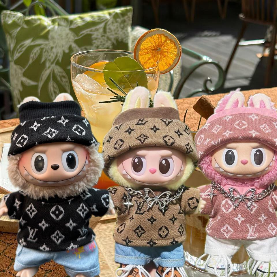 17cm labubuビニール人形の服ニットトレンディなプリント帽子1、2、3世代ユニバーサルスーツ服