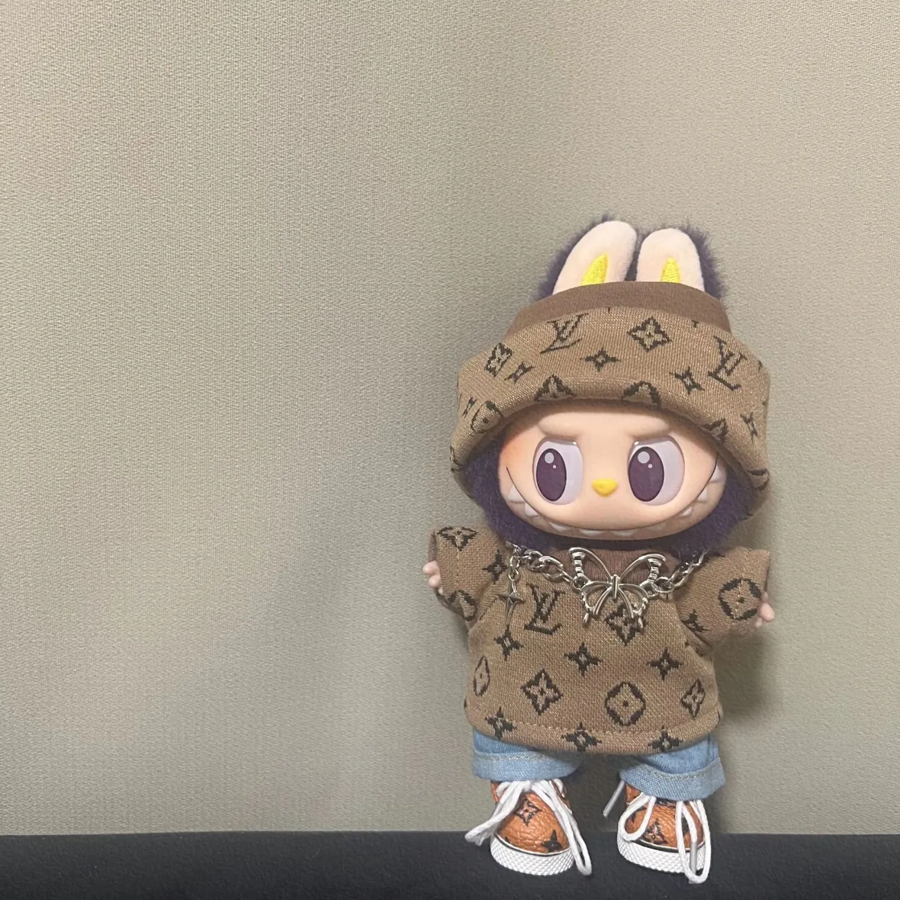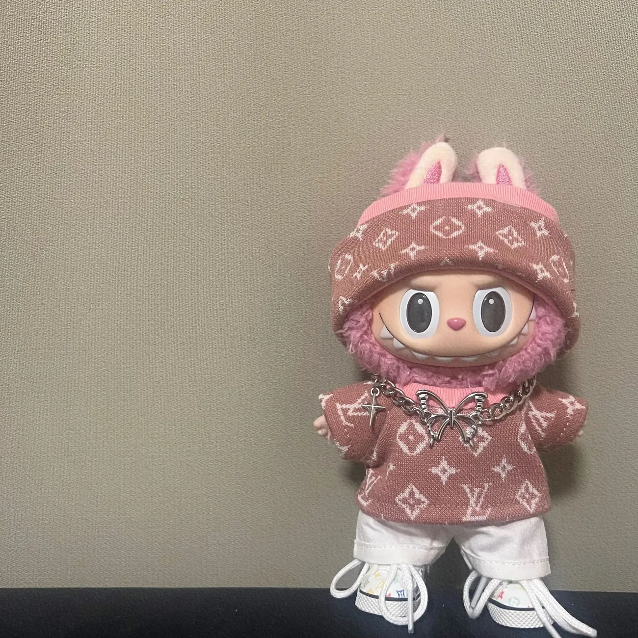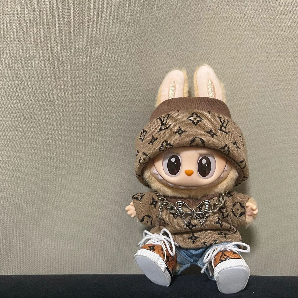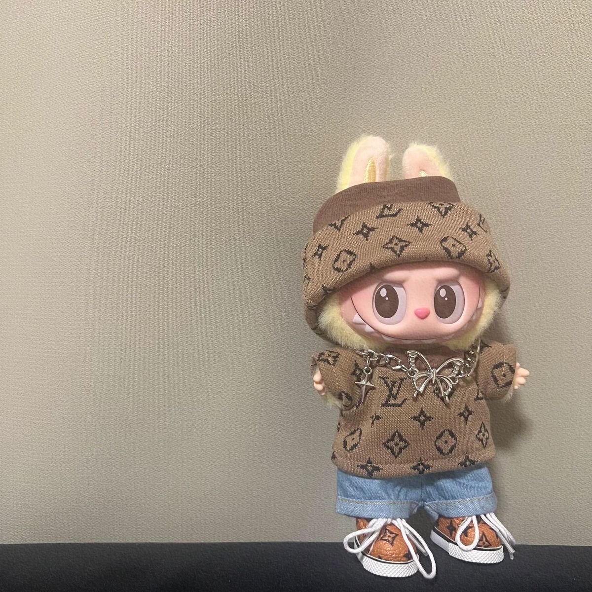 17cm labubuビニール人形の服ニットトレンディなプリント帽子1、2、3世代ユニバーサルスーツ服