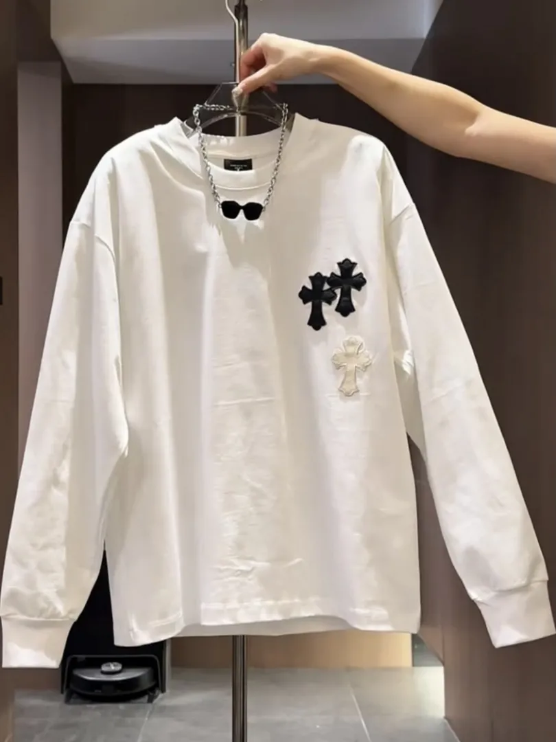 『M-5XL』新作秋冬レザーラベル刺繍スウェットシャツ男女兼用