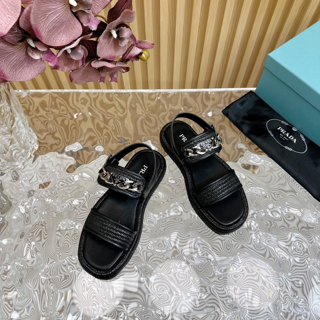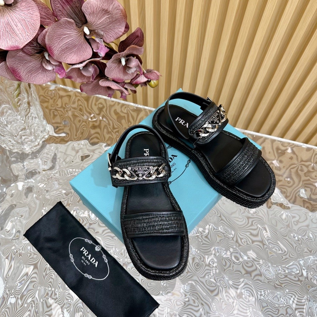 【P008】新品【PRADA】パレザー サンダル 厚底 三角ロゴ プラダ