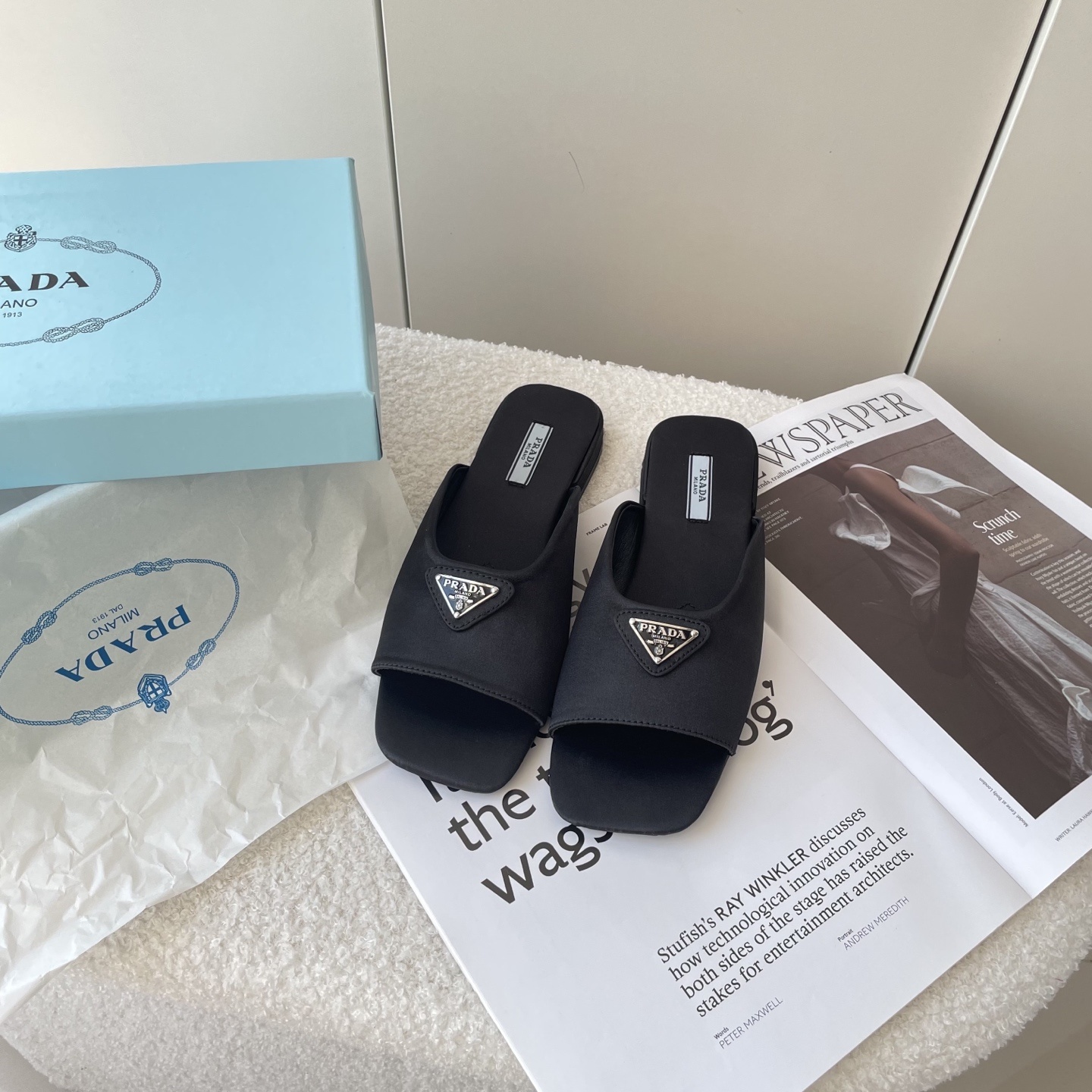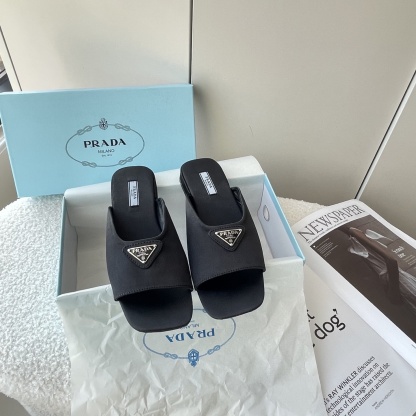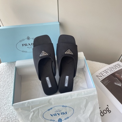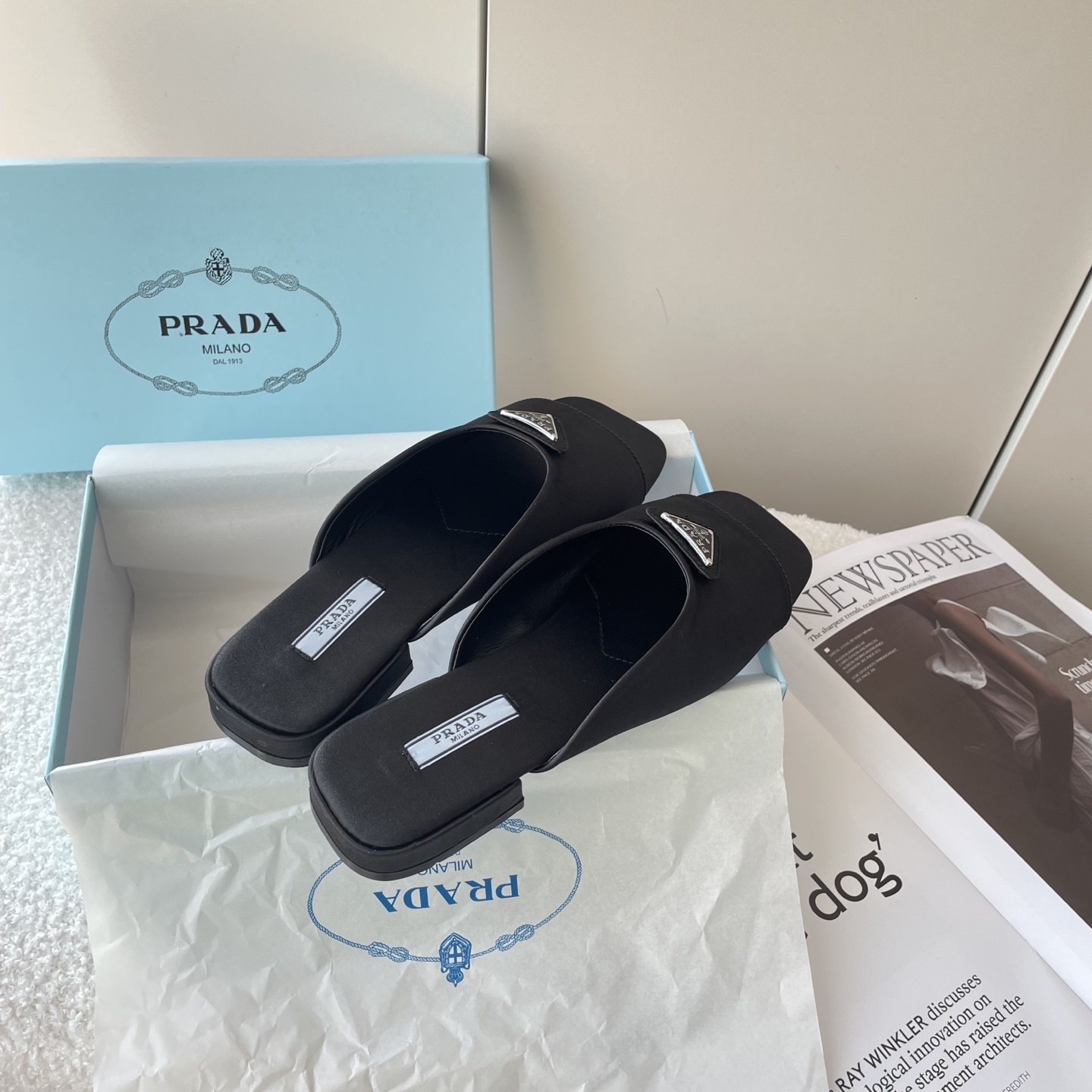 【P013】極美品 PRADA ロゴ ミュール サンダル ブラック プラダ