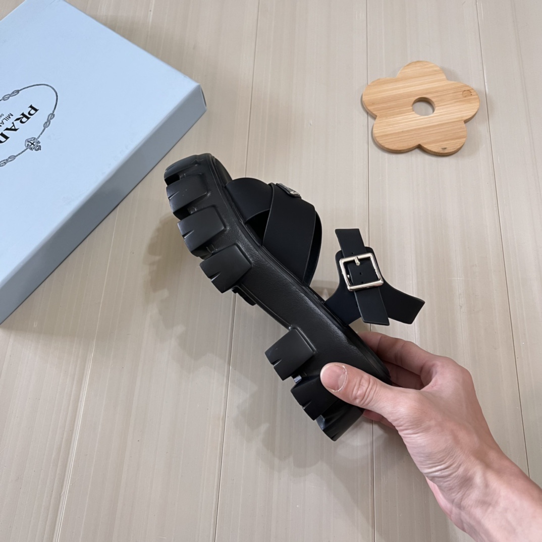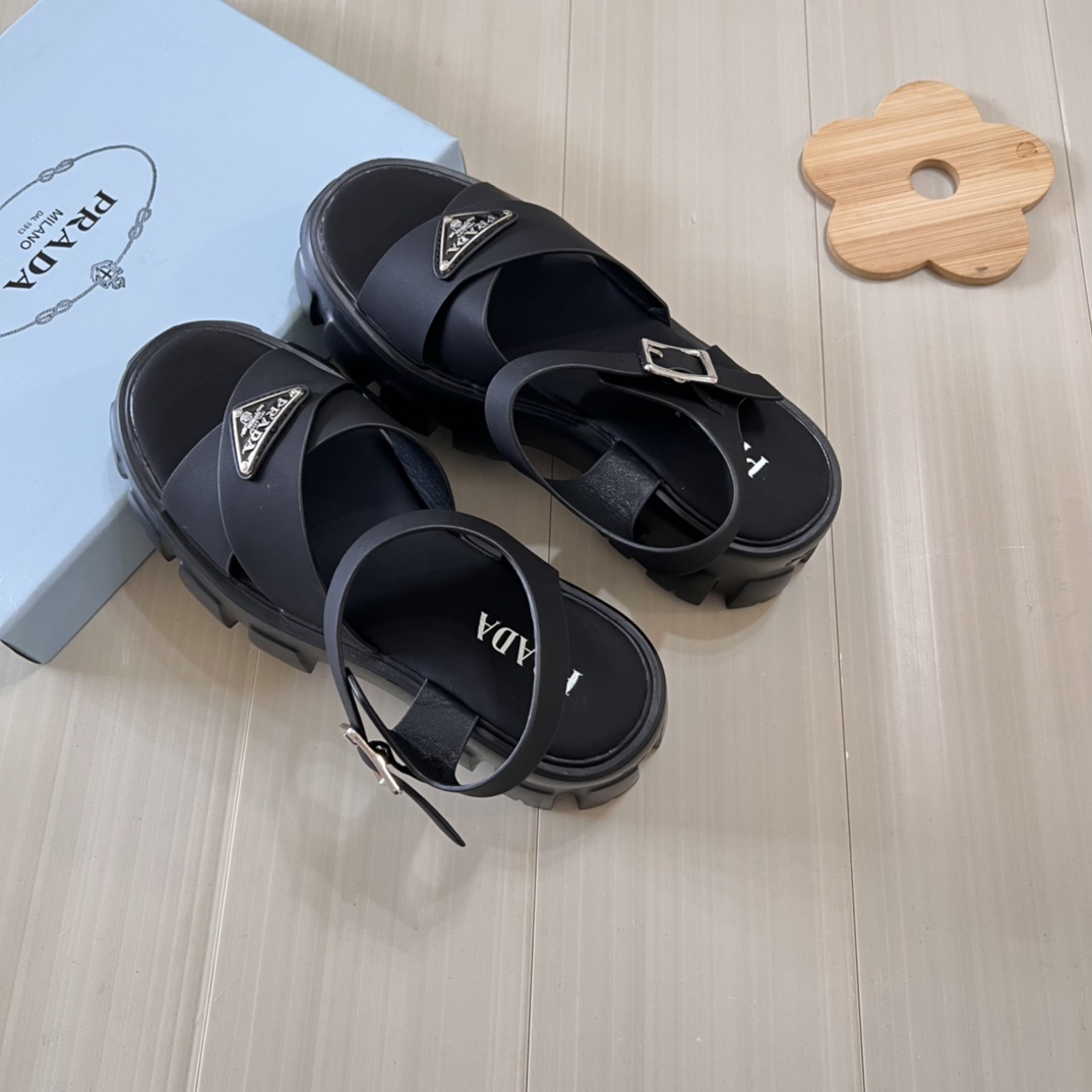 【P015】美品 PRADA モノリス サンダル 厚底 プラダ