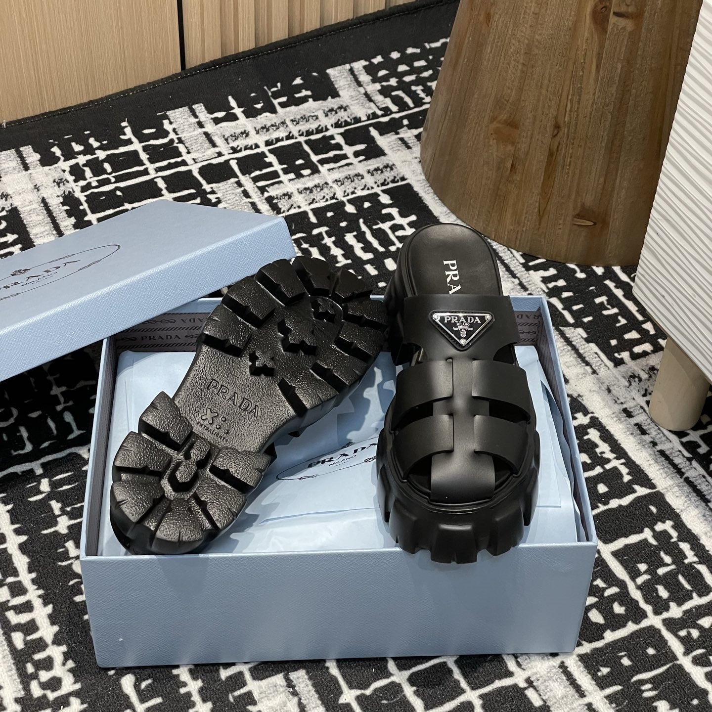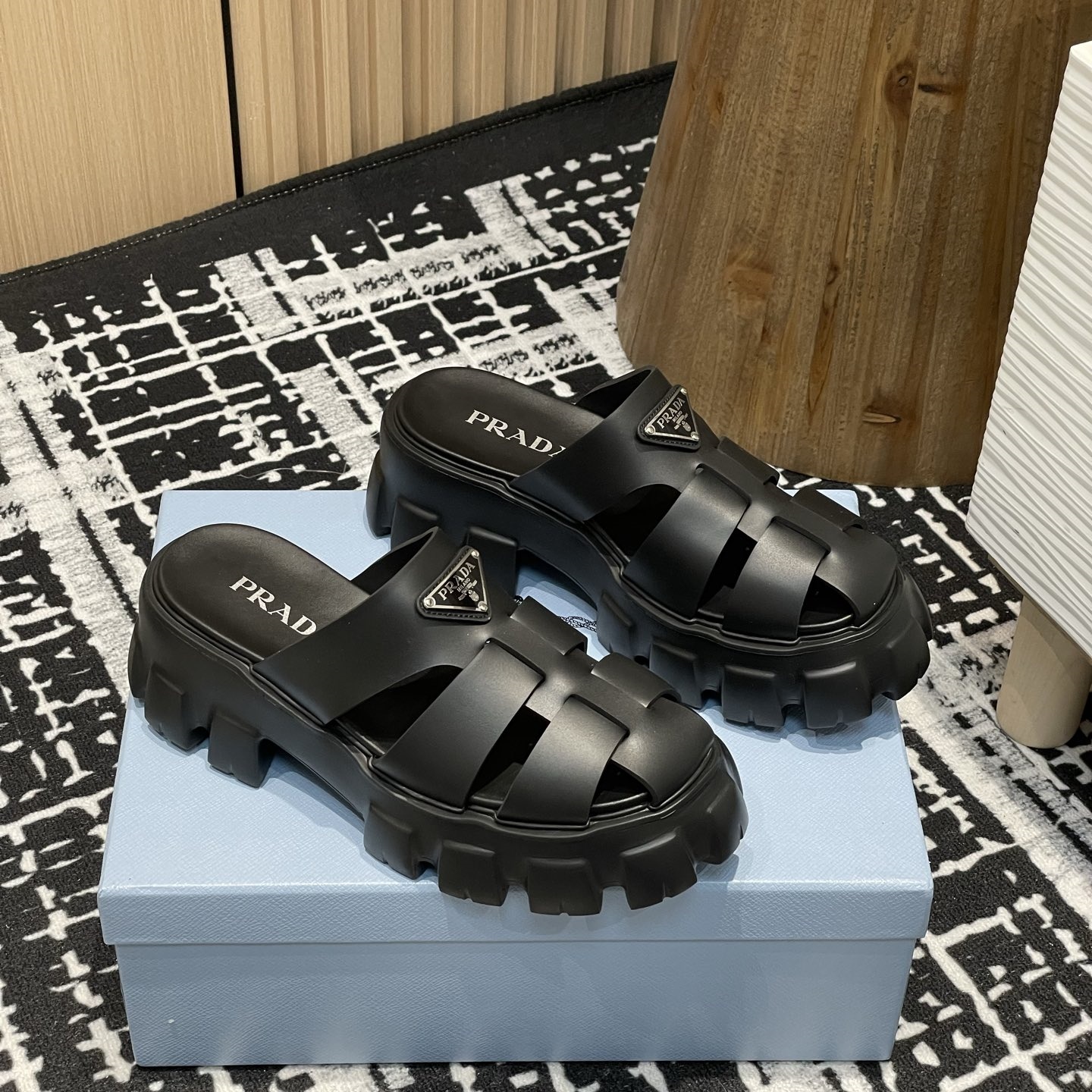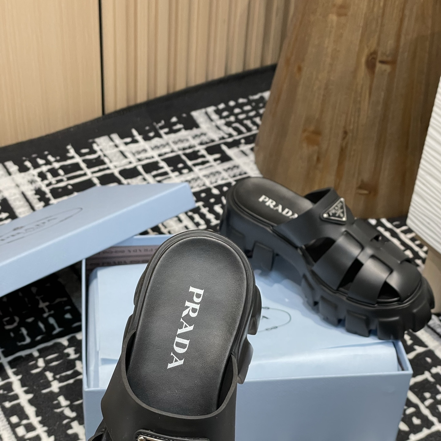 【P020】新品 PRADA サンダル ブラック プラダ