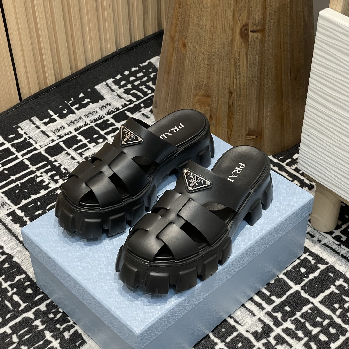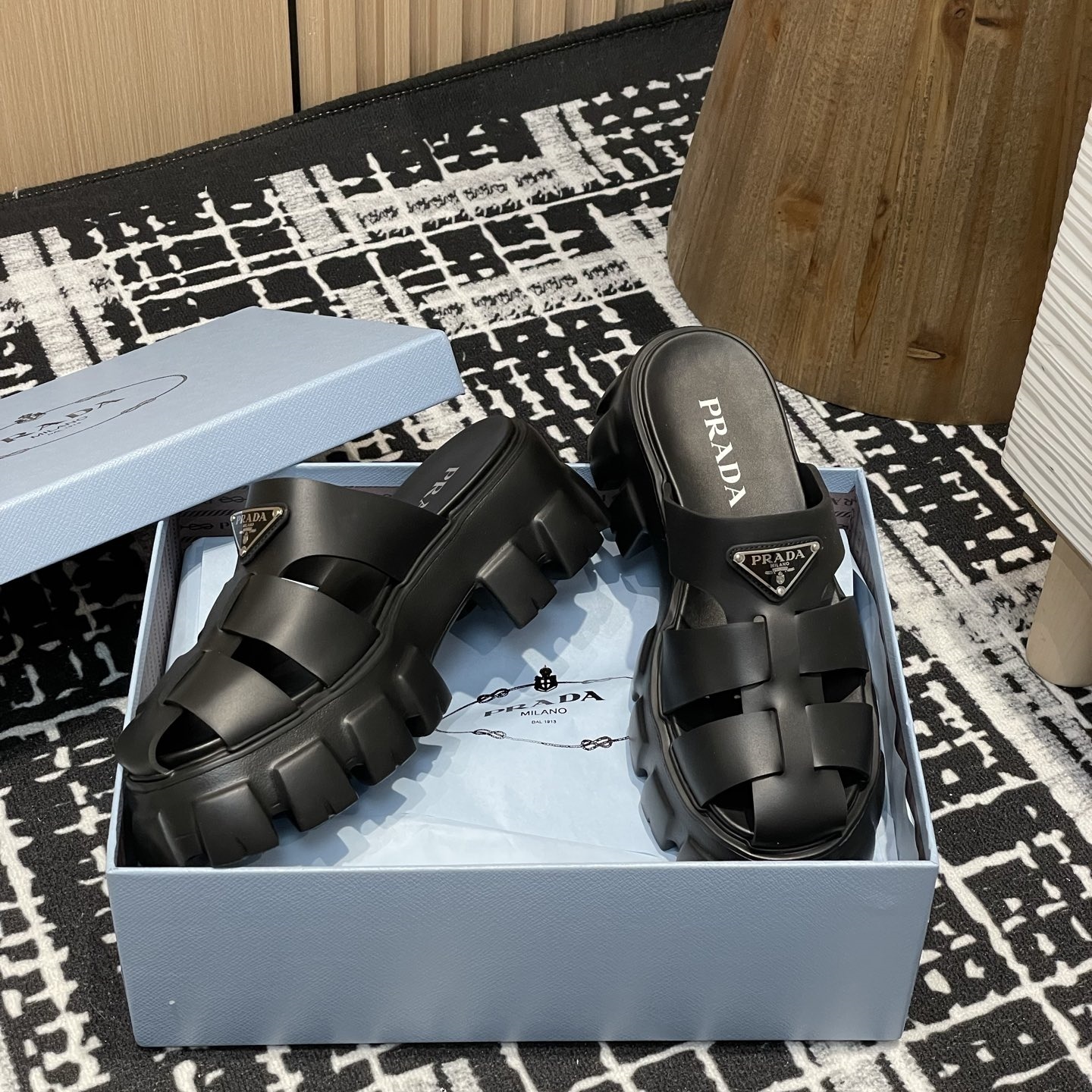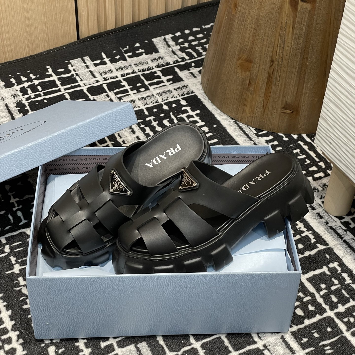 【P020】新品 PRADA サンダル ブラック プラダ