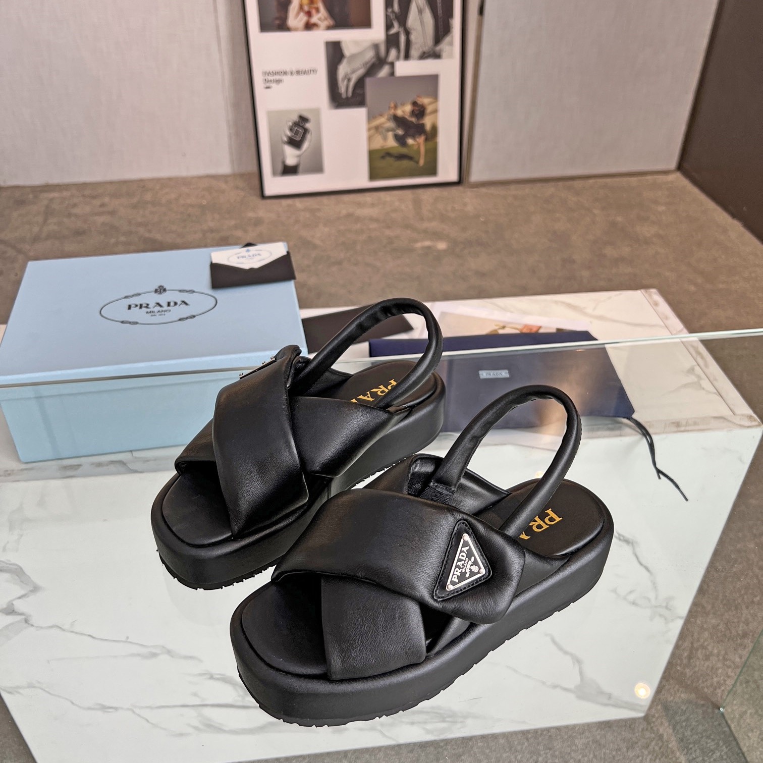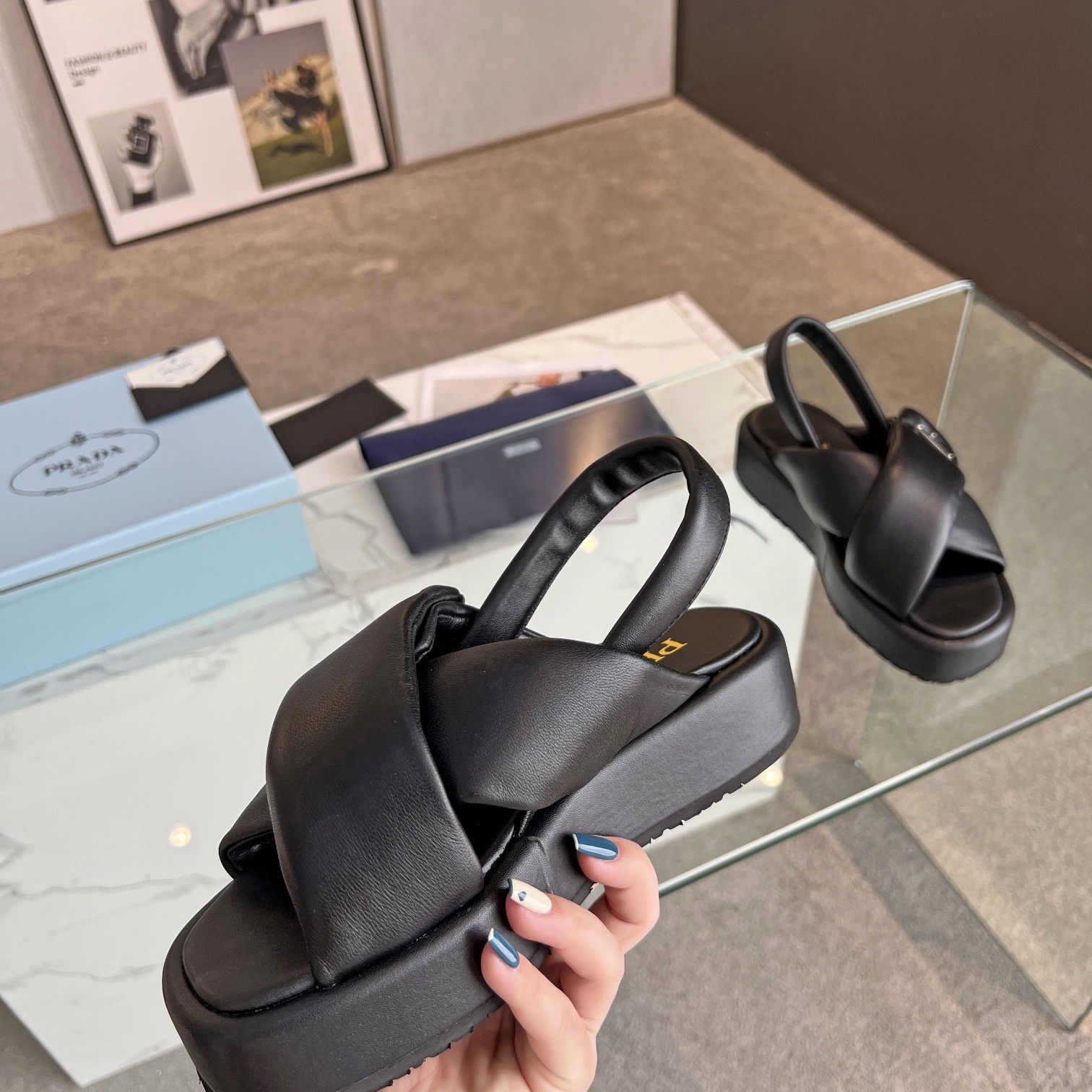 【P023】プラダ ソフトパデッドナッパレザー サンダル