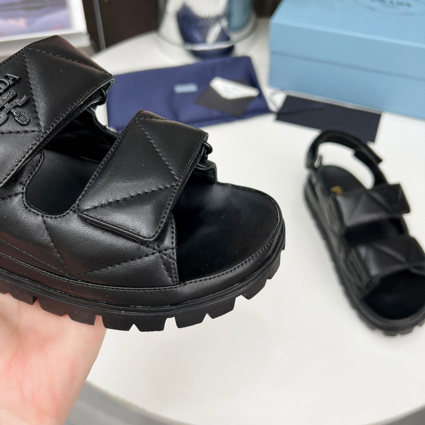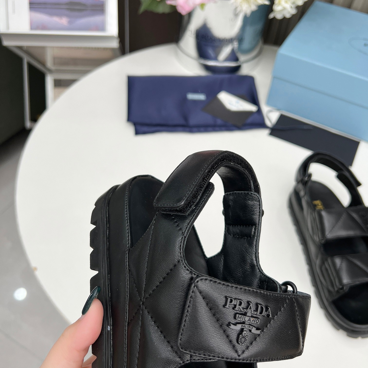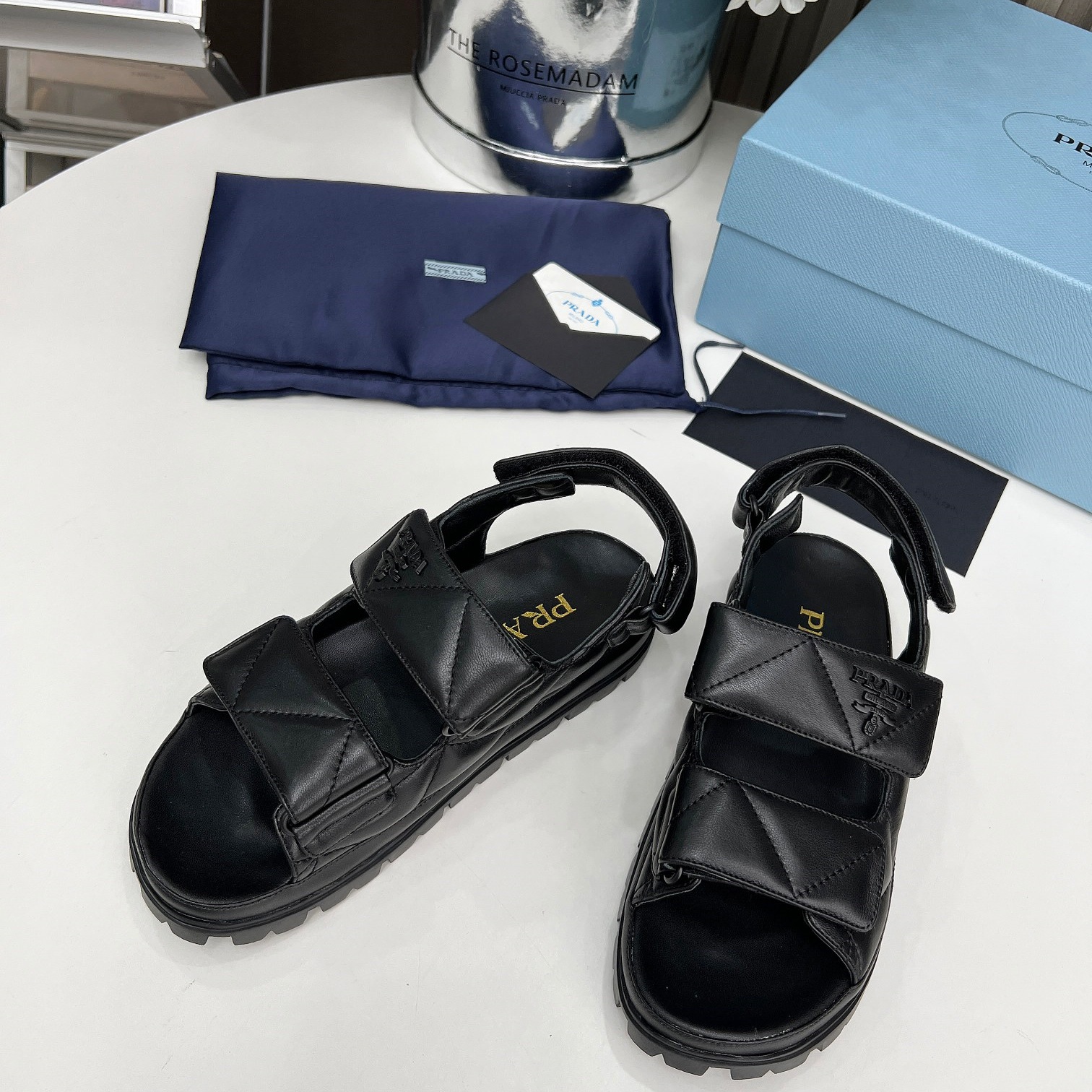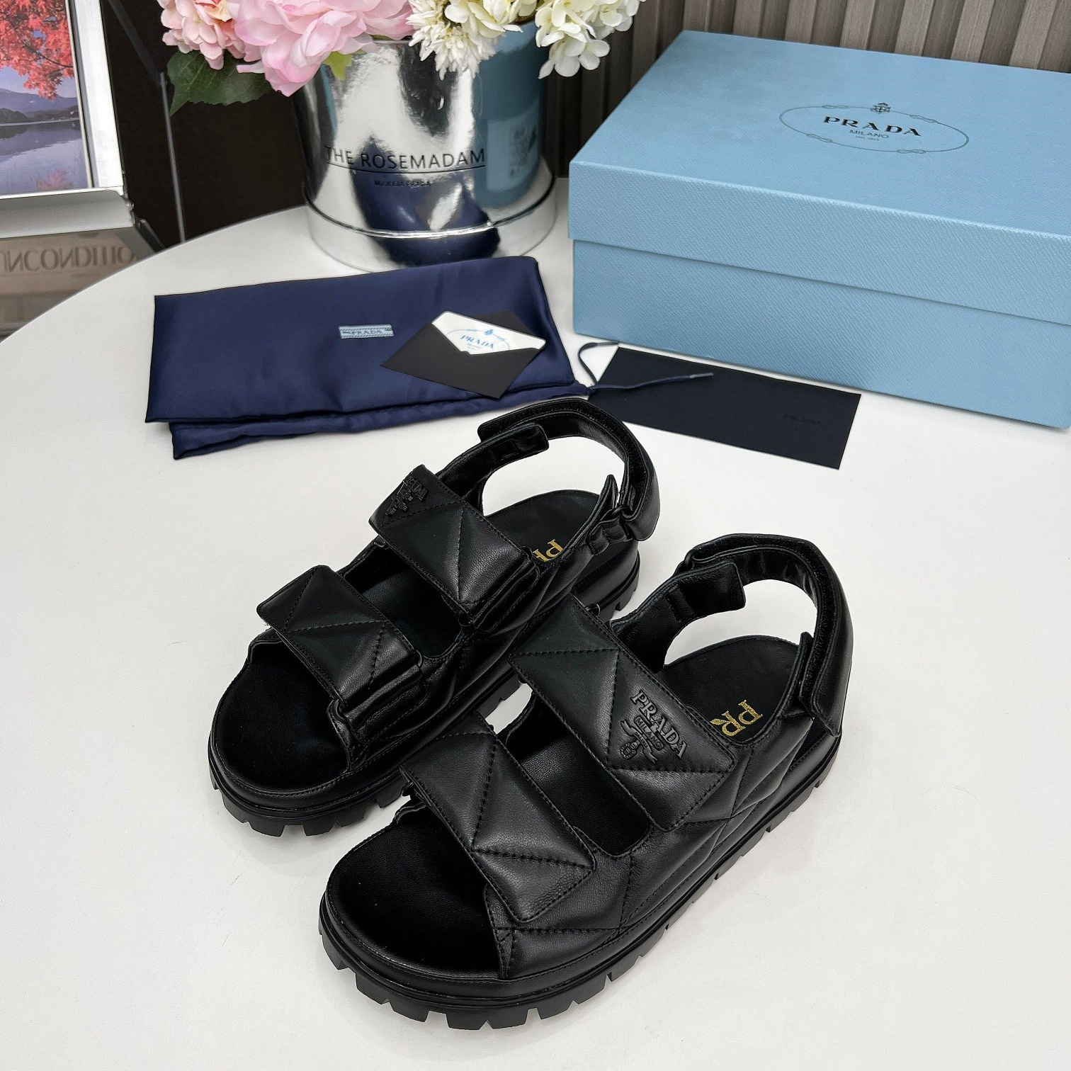 【P024】【新品未使用】PRADA/プラダ ナッパレザー サンダルブラック