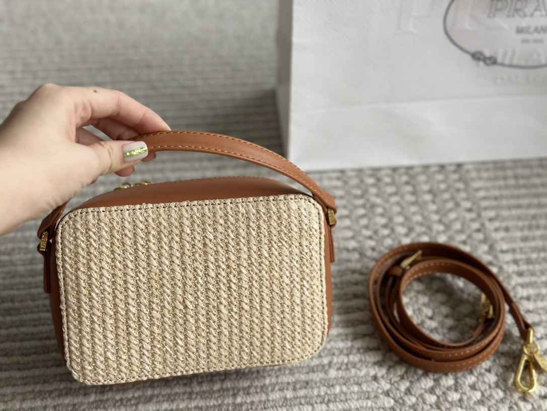 【PRADA旗艦店】プラダ わら編みバッグ カメラバッグ 18*12CM