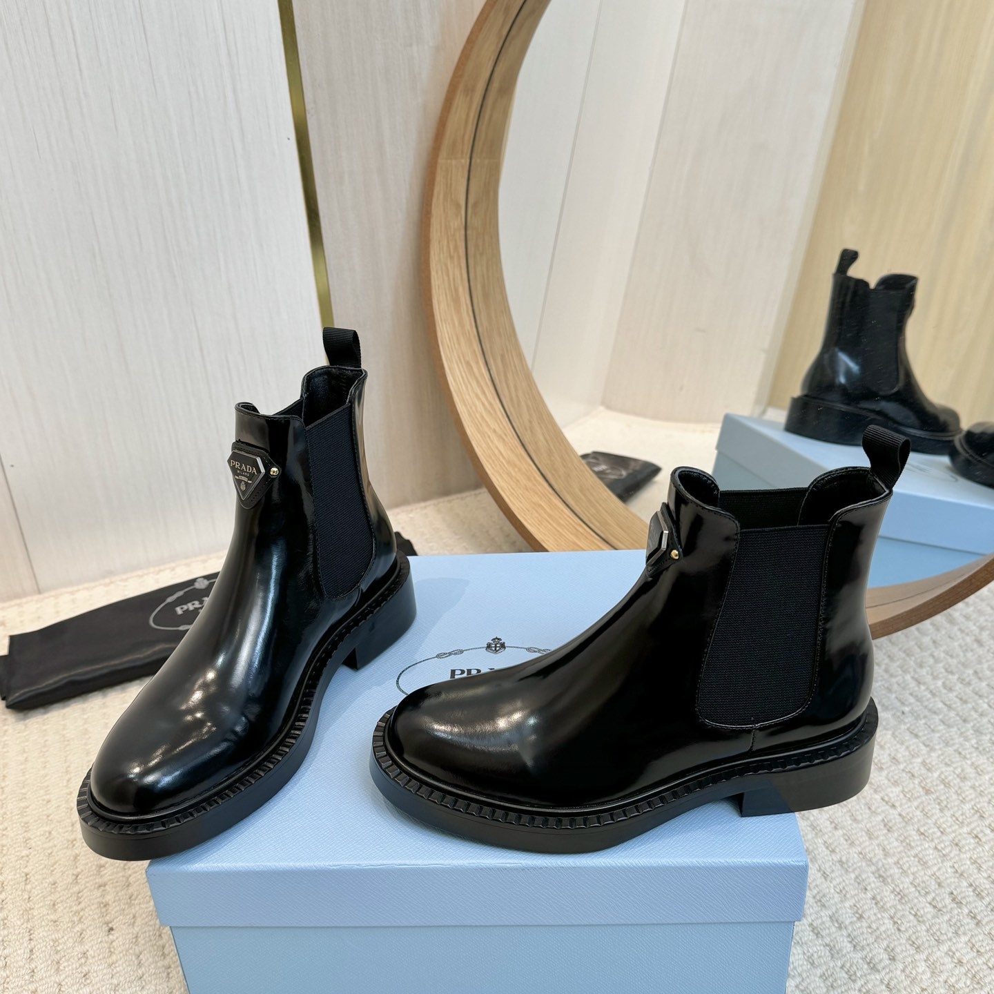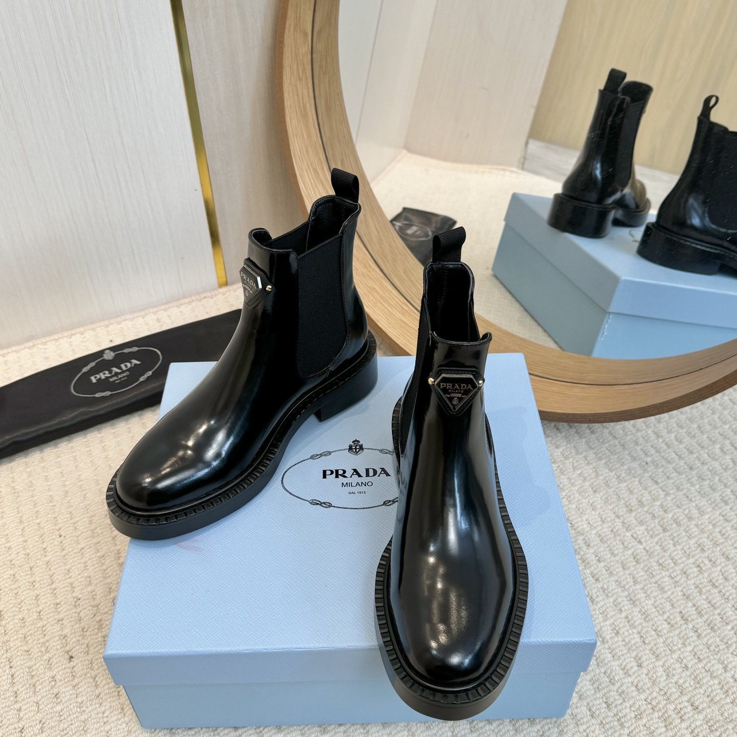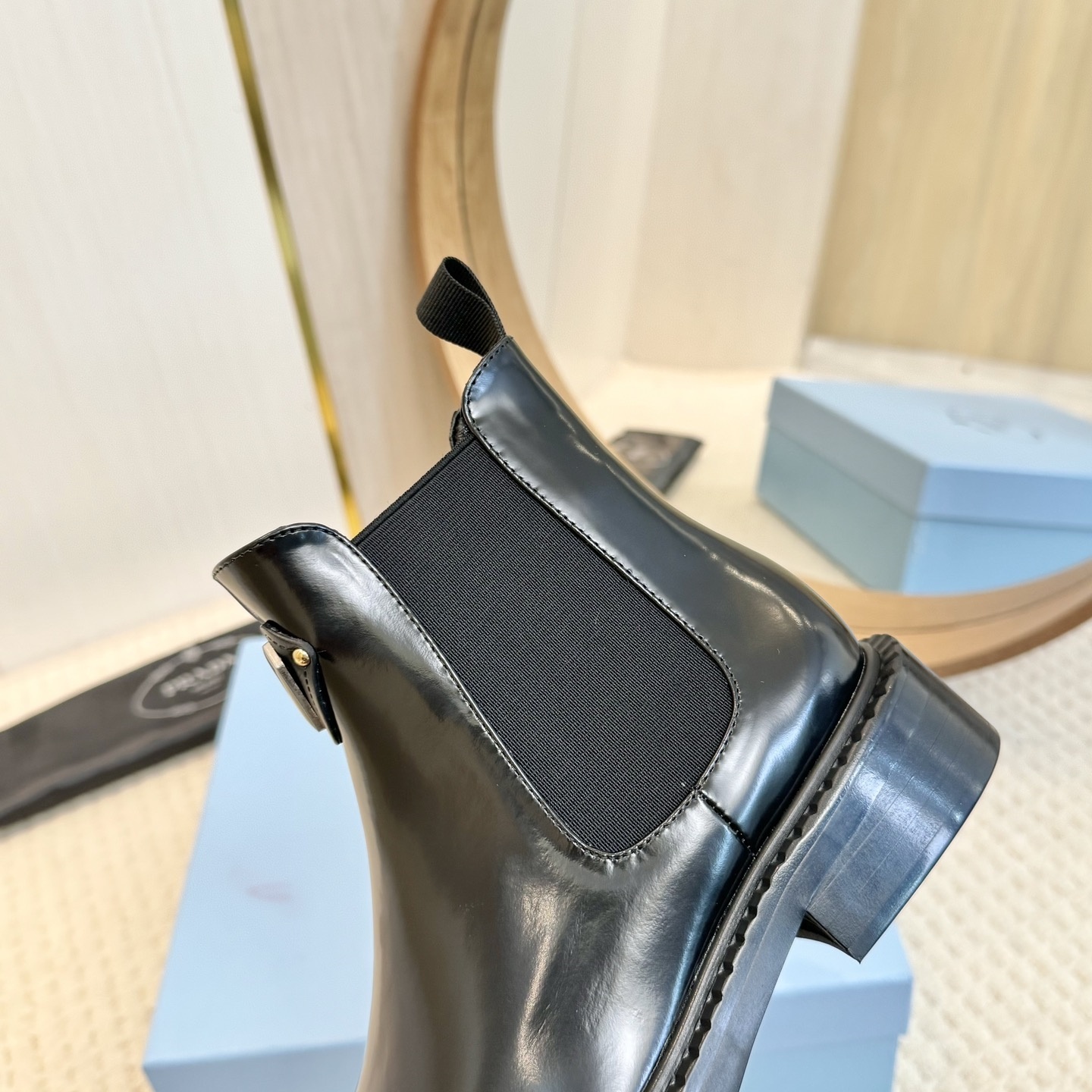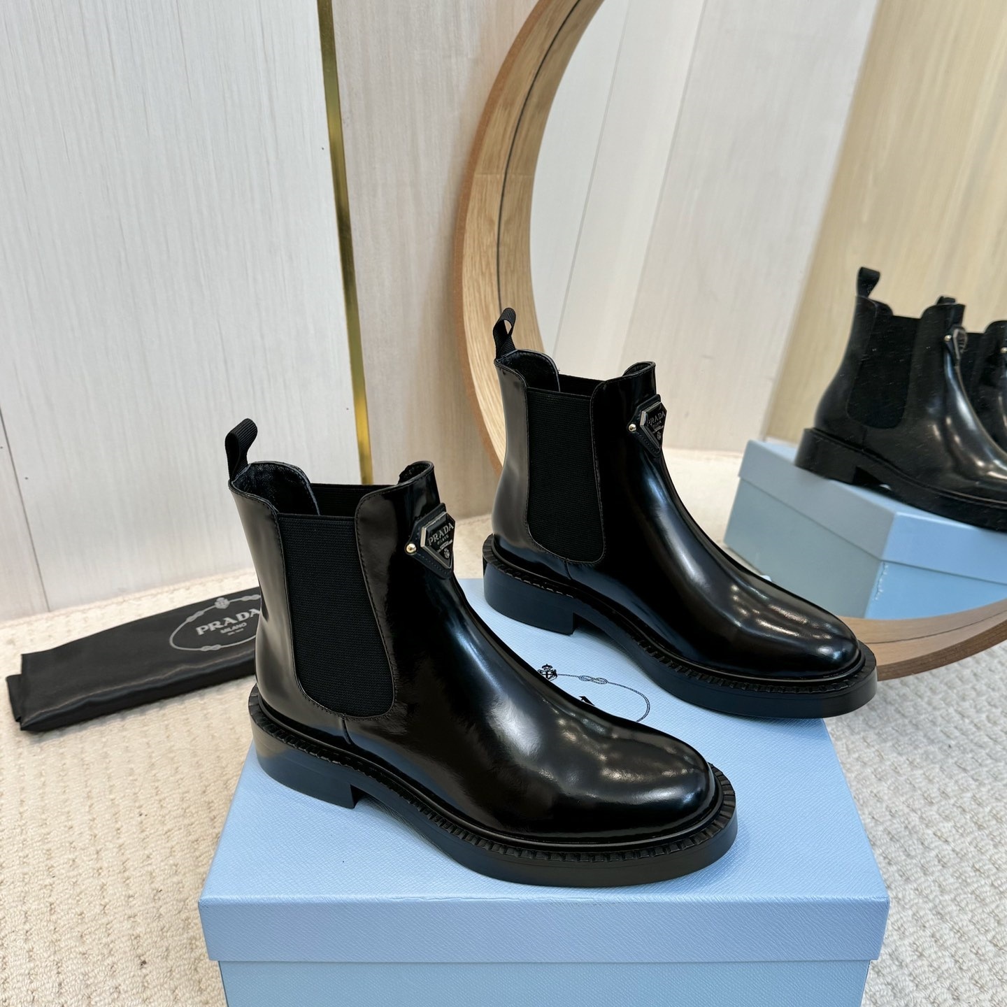 【P012】新品✨プラダ モノリス チェルシーブーツ 三角ロゴ ブラッシュドレザー