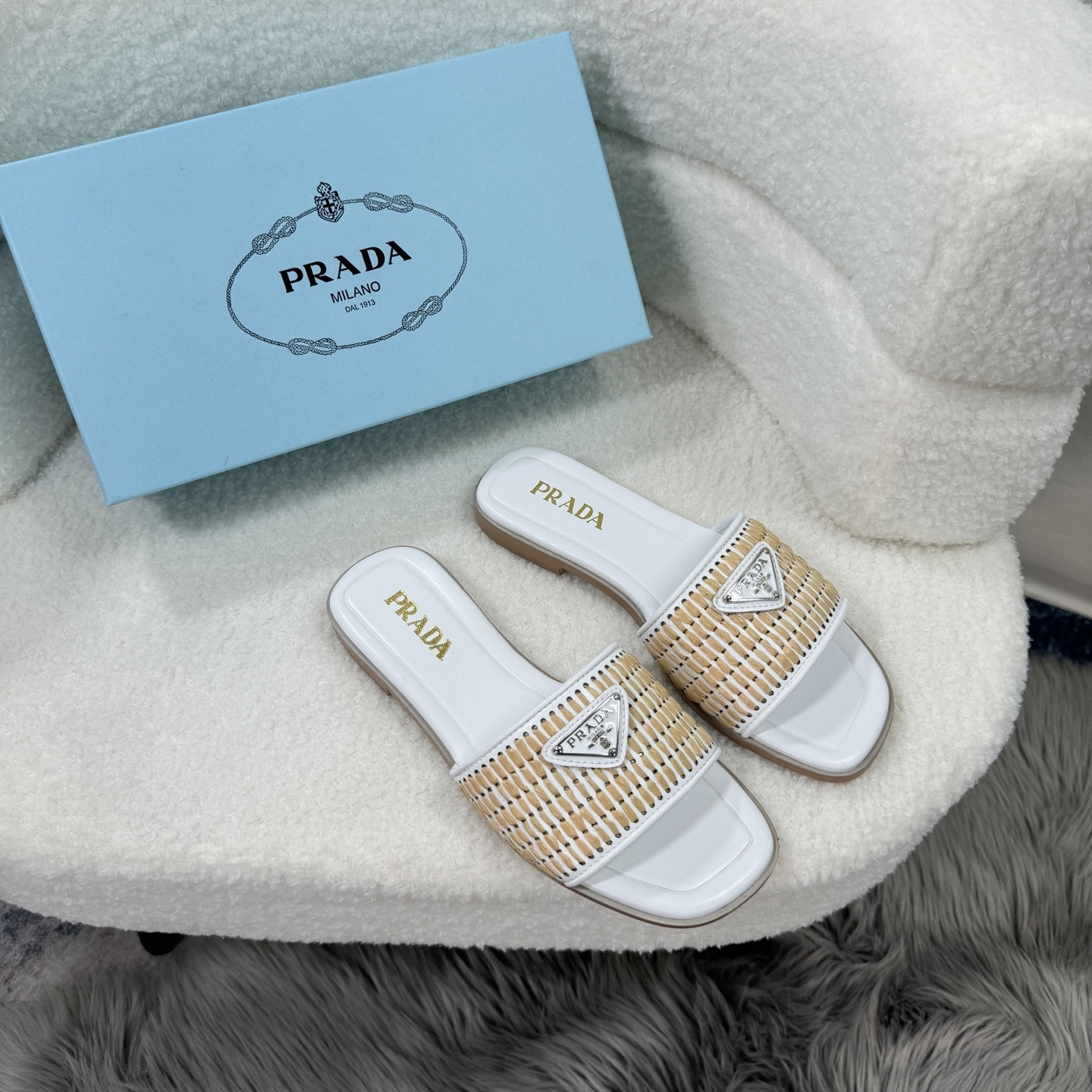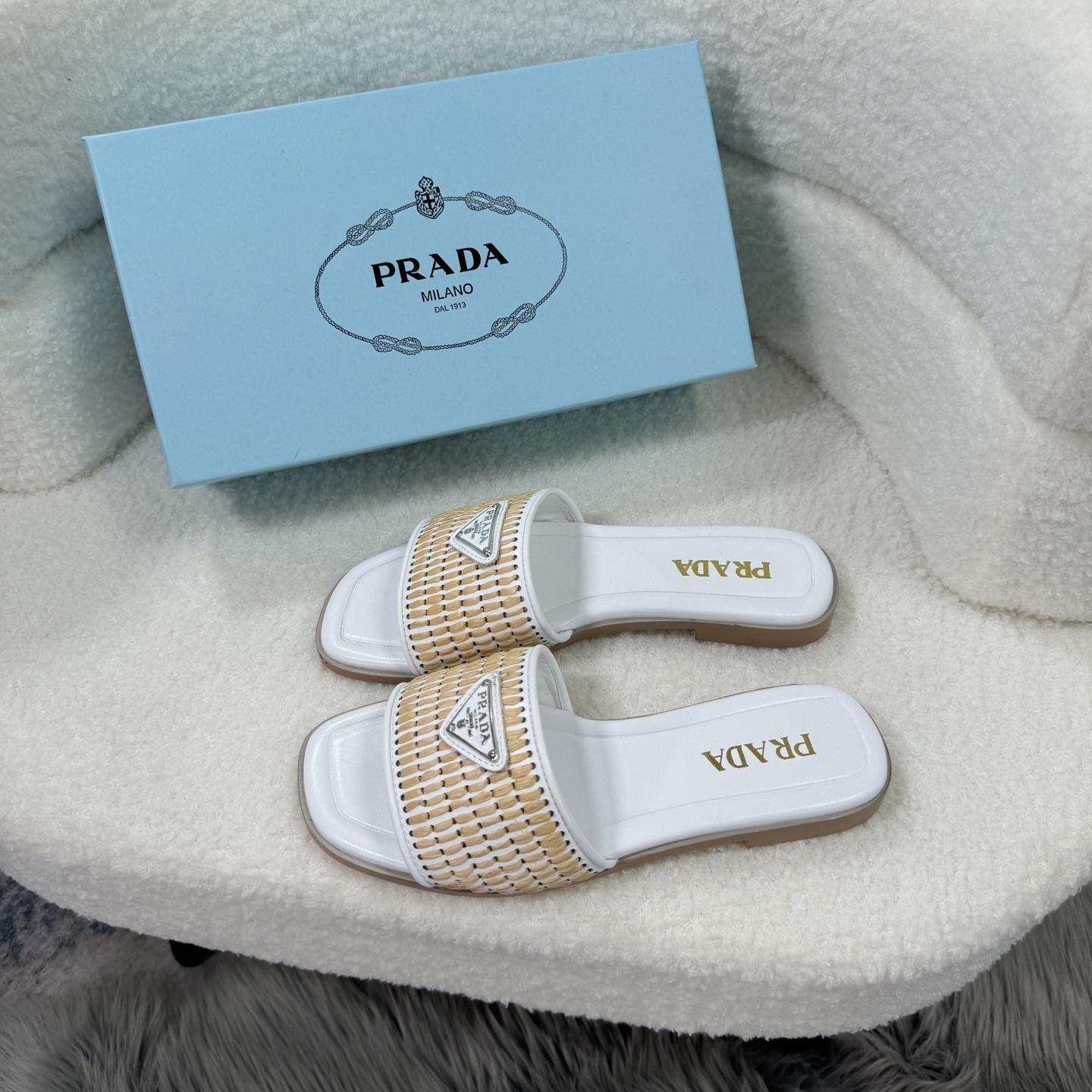 【P016】PRADA アイボリーホワイト フラットフォームストラップサンダル プラダ